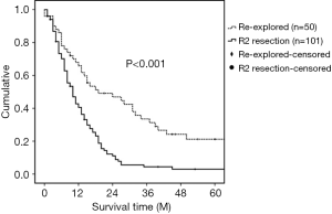 Re-exploration and resection versus R2 resections